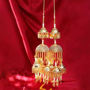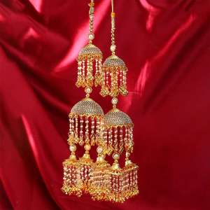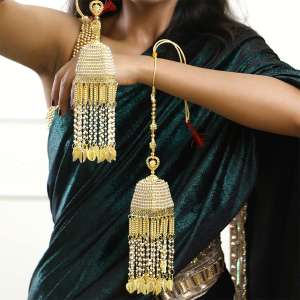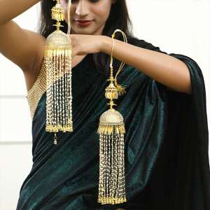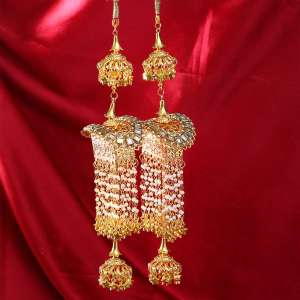 Upgrade your jewellery collection with this pair of kaleeras by Adwitiya. Made with high-quality material, they feature gold-plating. Style them with a lehenga on your special day to look stunning as ever.