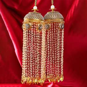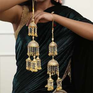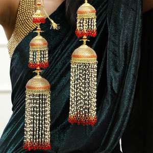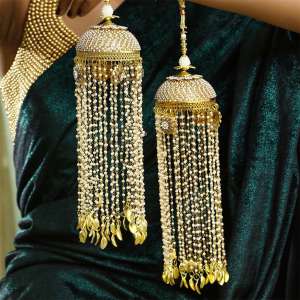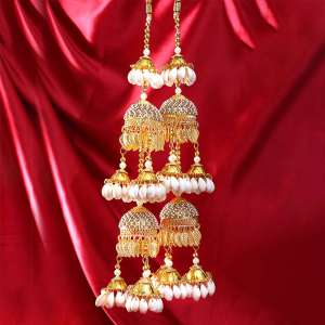 Women Gold Plated Stone Studded Pearl Tessel Traditional Neacklace and Earrings Our Gold Plating is long lasting and non-allergic to skin