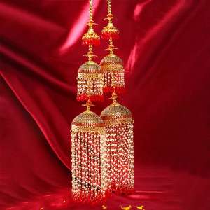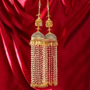 Women Gold Plated God & Goddes Design Pearl Tessel Traditional & Unique Chain Set Our Gold Plating is long lasting and non-allergic to skin