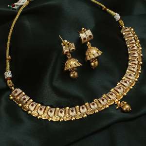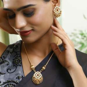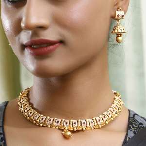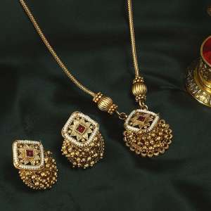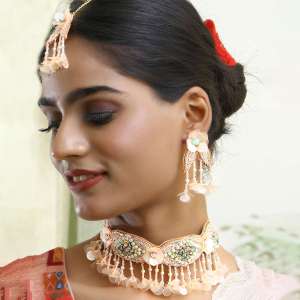 Women Gold Plated Unique Design Pearl & Stones Studded Traditional Chain Set Our Gold Plating is long lasting and non-allergic to skin