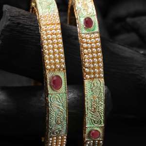 Women Set of 2 24CT gold-plated Red Stone handcrafted Enamled bangles, each has an intricate textured pattern
