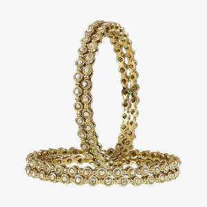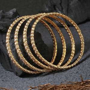 Women Set of 4 24CT gold-plated handcrafted Stone-Studded bangles, each has an intricate textured pattern