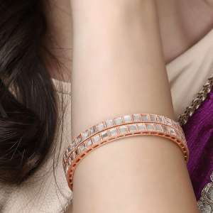 Women Set of 4 Rohdiumn Plated Pink Stone and Tiny Diamond Studded Bangles