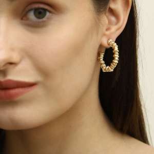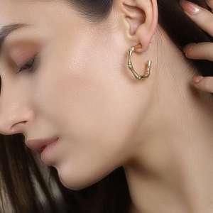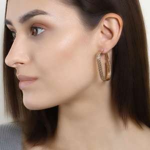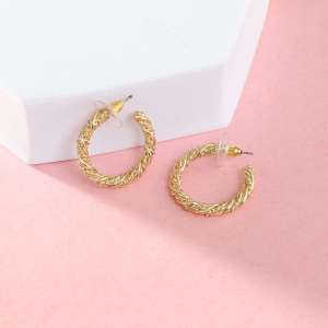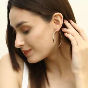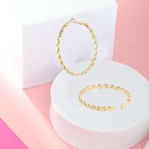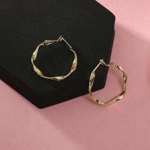 Women Gold Plated Twisted Pattern Hoop Earrings