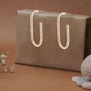 Women Gold-Plated U-Shape Omega Earrings. Our Gold Plating is Long Lasting and non-Allergic to Skin