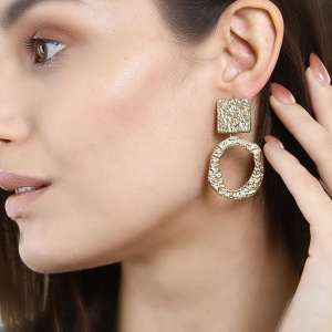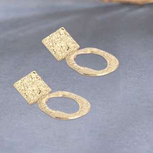 Women Gold-Plated Textured Contemporary Drop Earrings