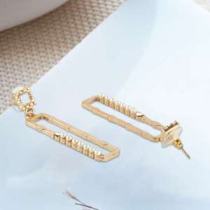 Women Gold Plated Square Cut-out Pearl Earrings
