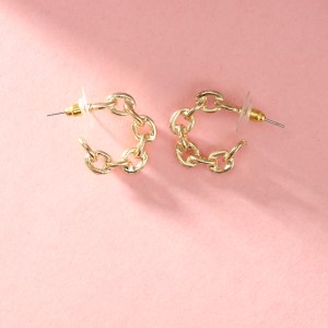 Women Gold-Tone Oval Link Open Hoop Earrings