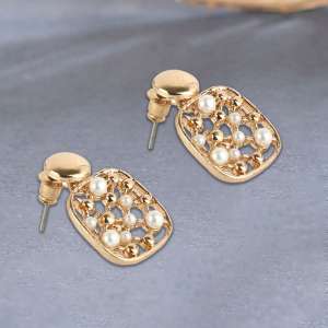 Women Gold Plated Pearl Beaded Dangler Earrings