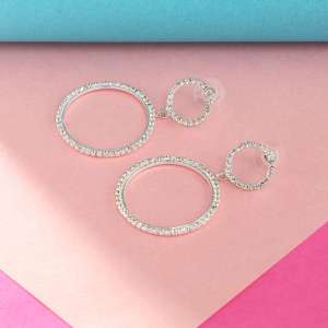Women Silver Plated Sparkling American Diamond Circle Drop Earrings