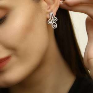 Women Rhodium Plated Stone Studded Earrings. Our Rhodium Plating is non-allergic to skin