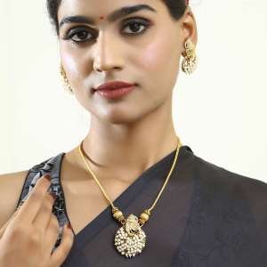 Women Gold Plated Krishna Design Pearl Studded Traditional Chain Set Our Gold Plating is long lasting and non-allergic to skin