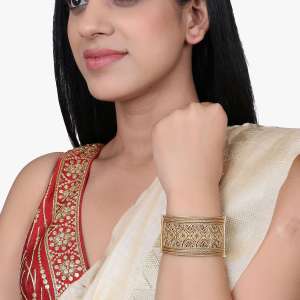 Gold Plated Flower Design Broad Bangles. Our gold plating is long lasting and non allergic to skin.