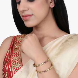 Women Gold Plated Stone Studded Designer Bangles.