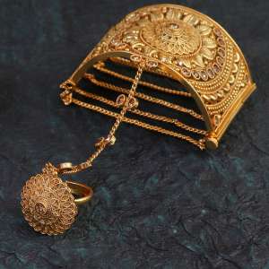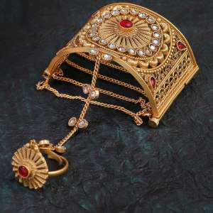 24CT Women Stone-Studded gold-plated Stone-Studded bracelet with Ring, secured with an Screw.