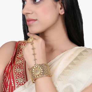 Women Gold Plated Cream Stone and Kundan Studded Designer Bangle
