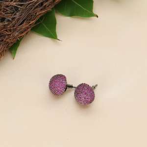 Women Rhodium Plated Pink Antique Zirconia Stud Earrings, Our Rhodium plating is long lasting and non allergic to skin,and has artificial stones,Secured with a fraction Back closure.