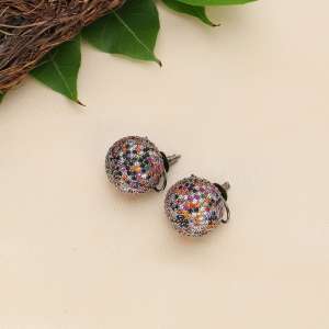 Gold-Plated Handcrafted Zirconia Stone Studded Earrings.Our Gold plating is long lasting and non allergic to skin,and has artificial stones,Secured with a fraction Back closure.