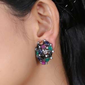 Multicolor Silver Vitorian Earrings