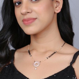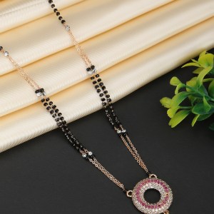 Rose Gold-Plated S-Arrow Shape Stone-Studded Traditional Mangalsutra, Gold-Plated handcrafted Mangalsutra.
