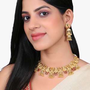 Gold Plated Laxmi Temple Jhumkis