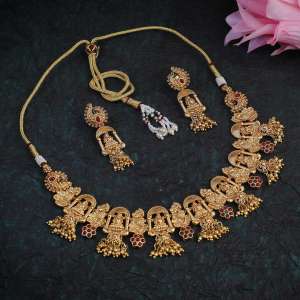 The Necklace Set Pearl Beaded, secured with a Locked-Hook closure,A pair of matching embellished Drop earrings, secured with post and back closure.