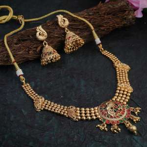 Gold Plated Stone Pearl Jewellery Set