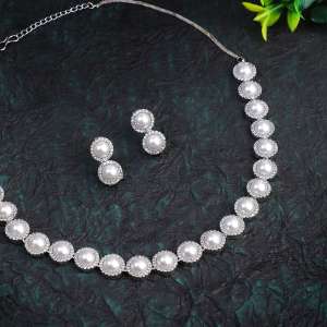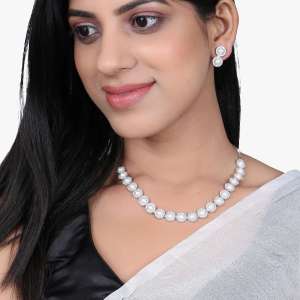 Rhodium Plated Pearl Jewellery Set