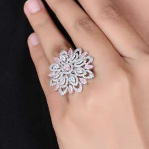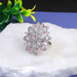 The Rhodium Plated Stone Studded Pink Flower Shape Beautiful Stylish Rings by our brand are a stunning addition to any Jewelry Collection. Rhodium contemporary Finger Ring