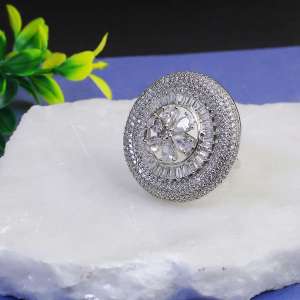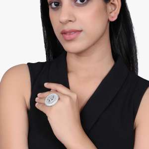 The Rhodium Plated Stone Studded Round Shape Beautiful Stylish Rings by our brand are a stunning addition to any Jewelry Collection. Rhodium contemporary Finger Ring, and has artificial stones,Secured with a post and back closure.