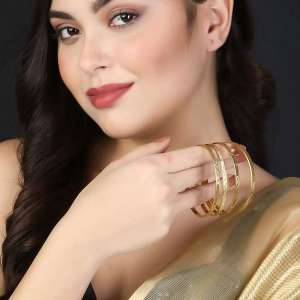 Women Gold-Plated Stone-Studded Bangles.