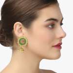 Women 24CT Gold-Plated Flower shaped stone studded Dome-Shaped Jhumkas Copper Jhumki Earring,Gold-plated,our Gold plating is long lasting and non allergic to skin,and has artificial stones,Secured with a post and back closure.