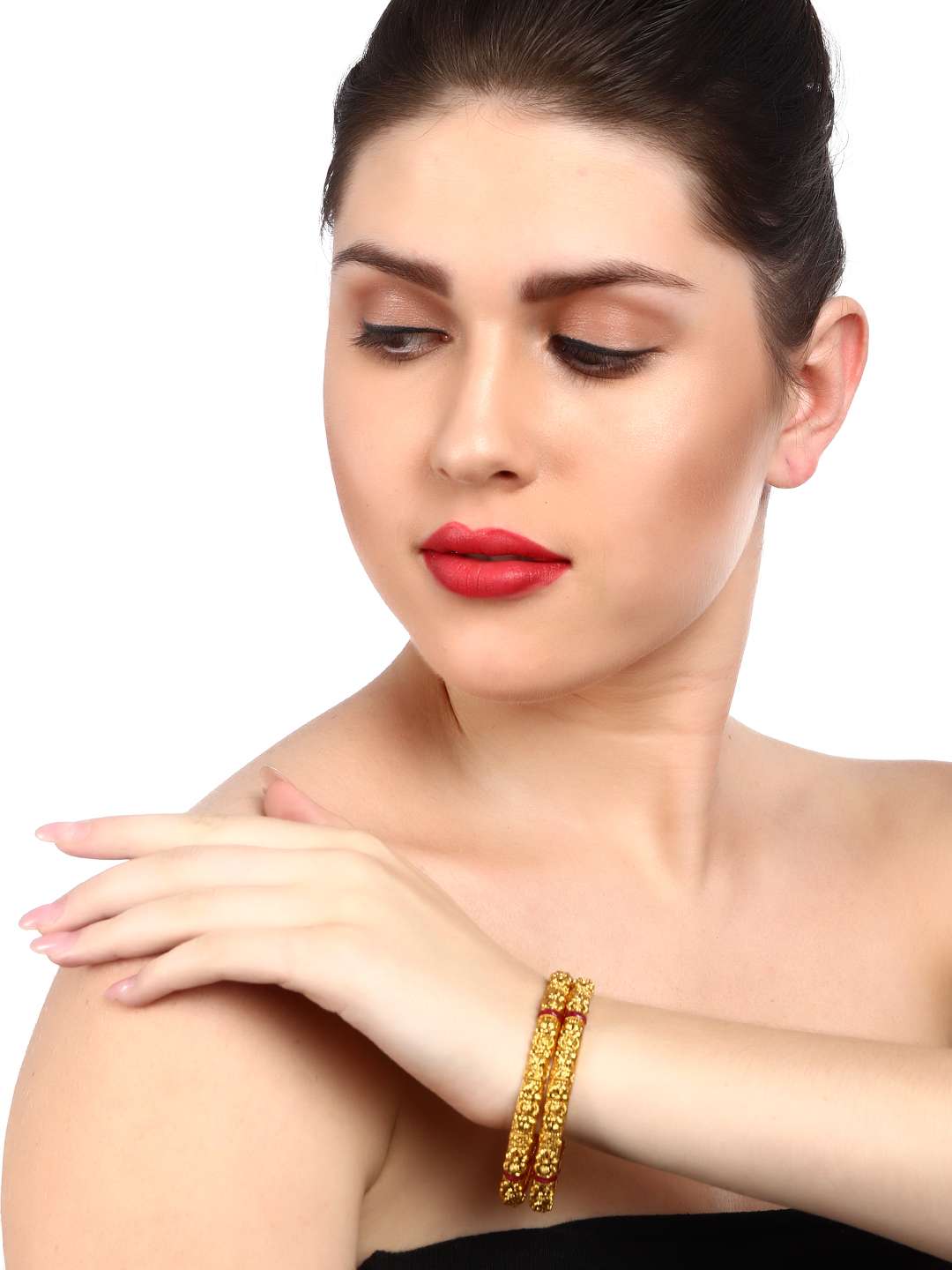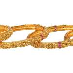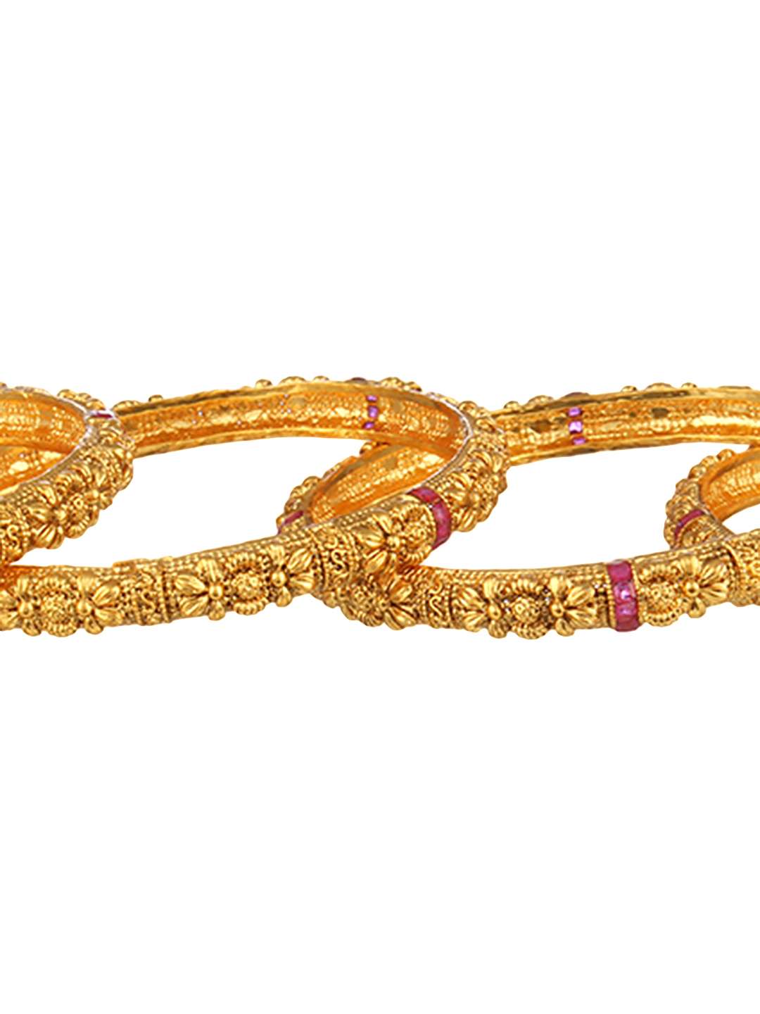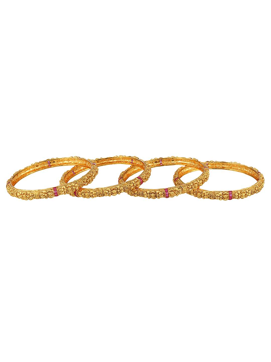 Set of Four 24CT gold-plated Stone-Studded handcrafted bangles, each has an intricate textured pattern.,our gold plating is long lasting and non allergic to skin.