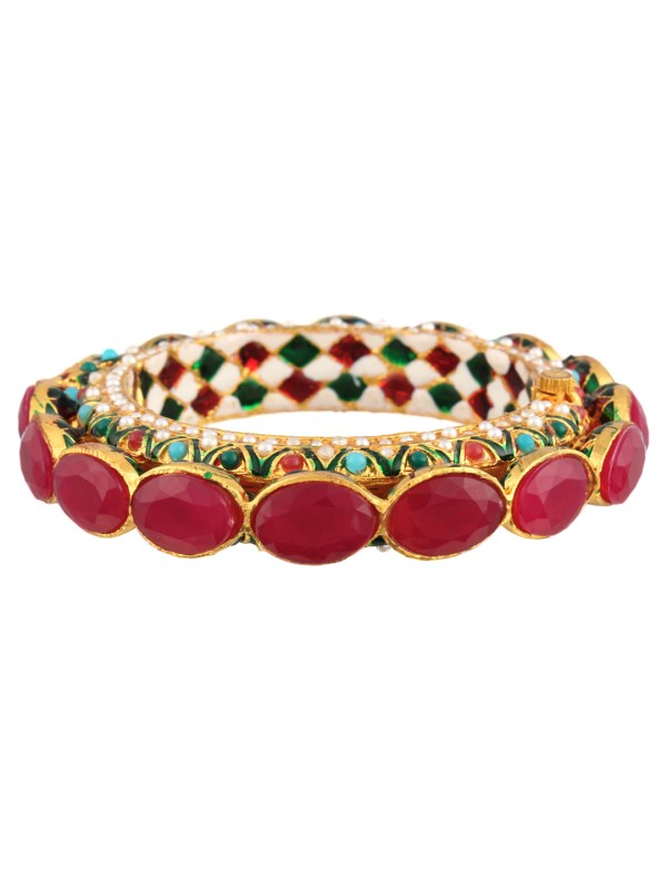 24CT Gold Plated Stone Pearl Bangles