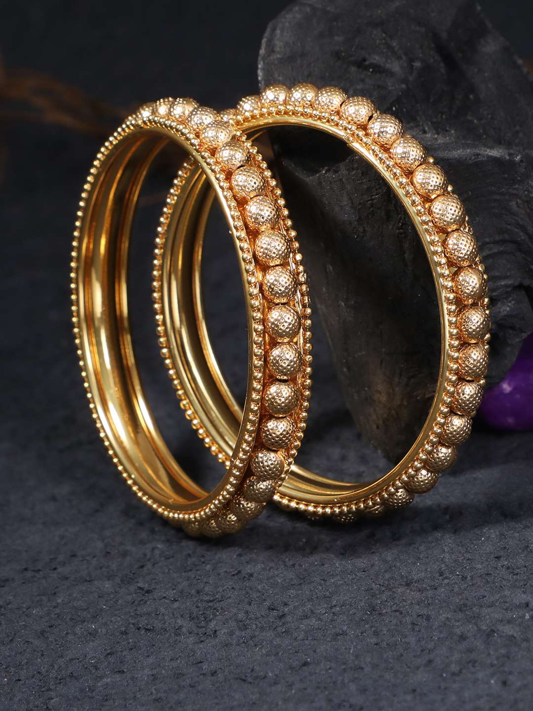 Set of Two 24 CT gold-plated handcrafted bangles, each has an intricate textured pattern.