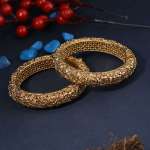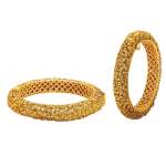 Set of Two 24CT gold-plated handcrafted bangles, each has an intricate textured pattern.