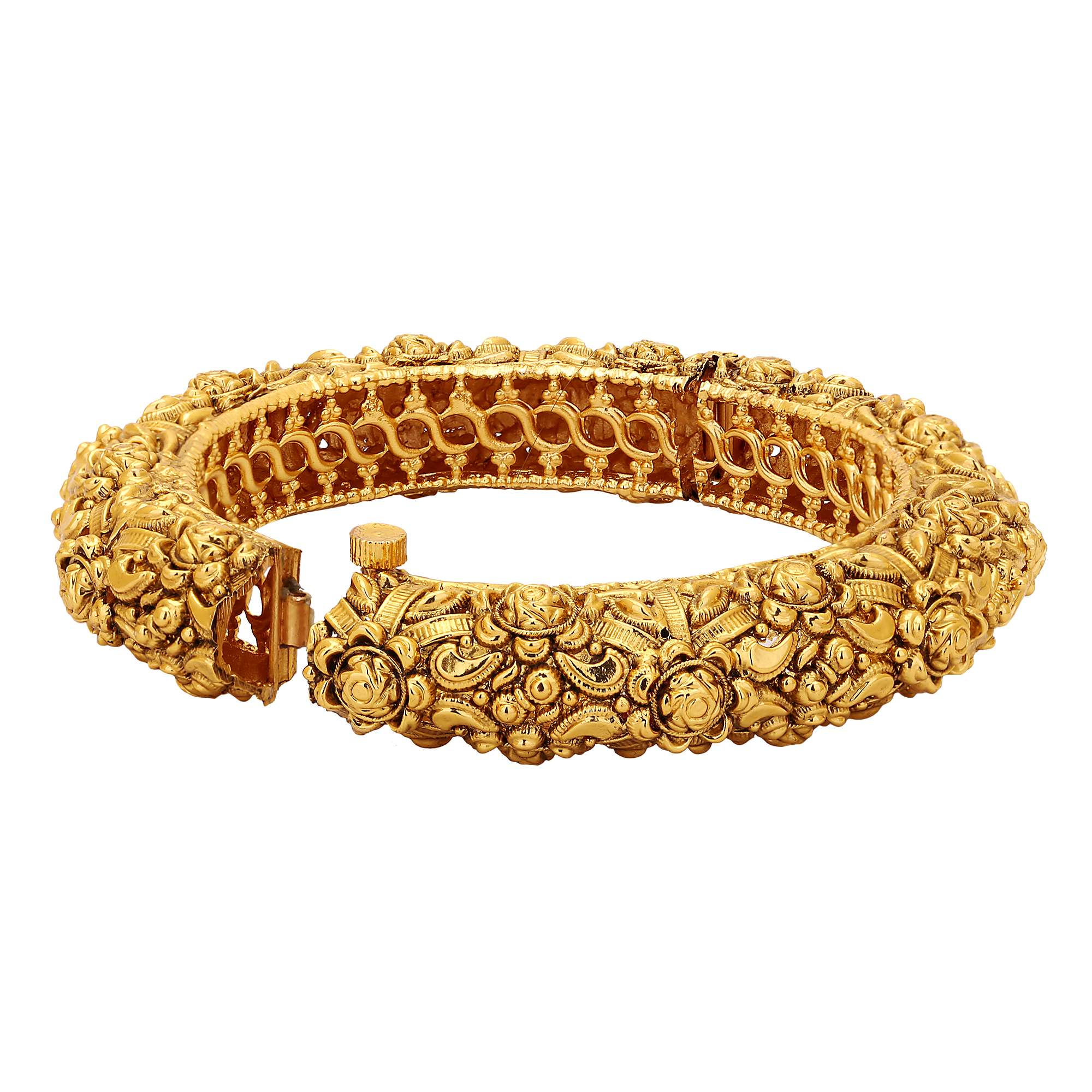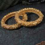 Set of Two 24CT gold-plated handcrafted bangles, each has an intricate textured pattern.