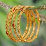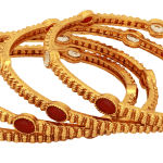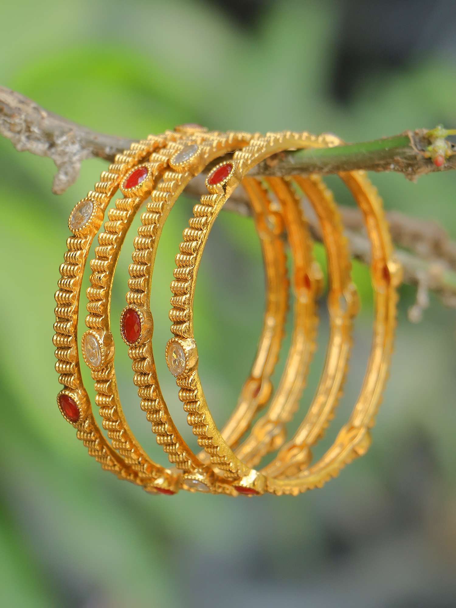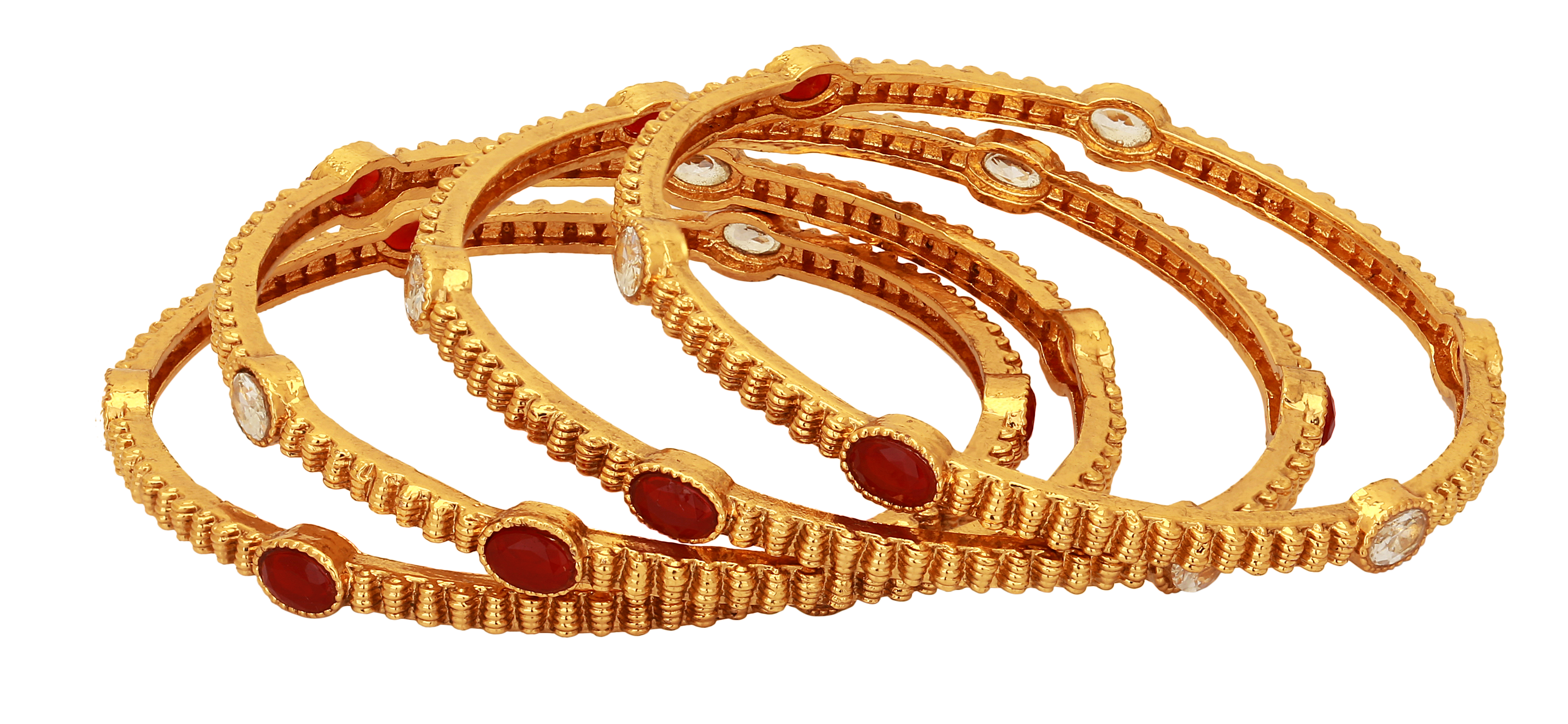 Set of Four 24CT gold-plated handcrafted bangles, each has an intricate textured pattern.our Gold plating is long lasting and non allergic to skin.