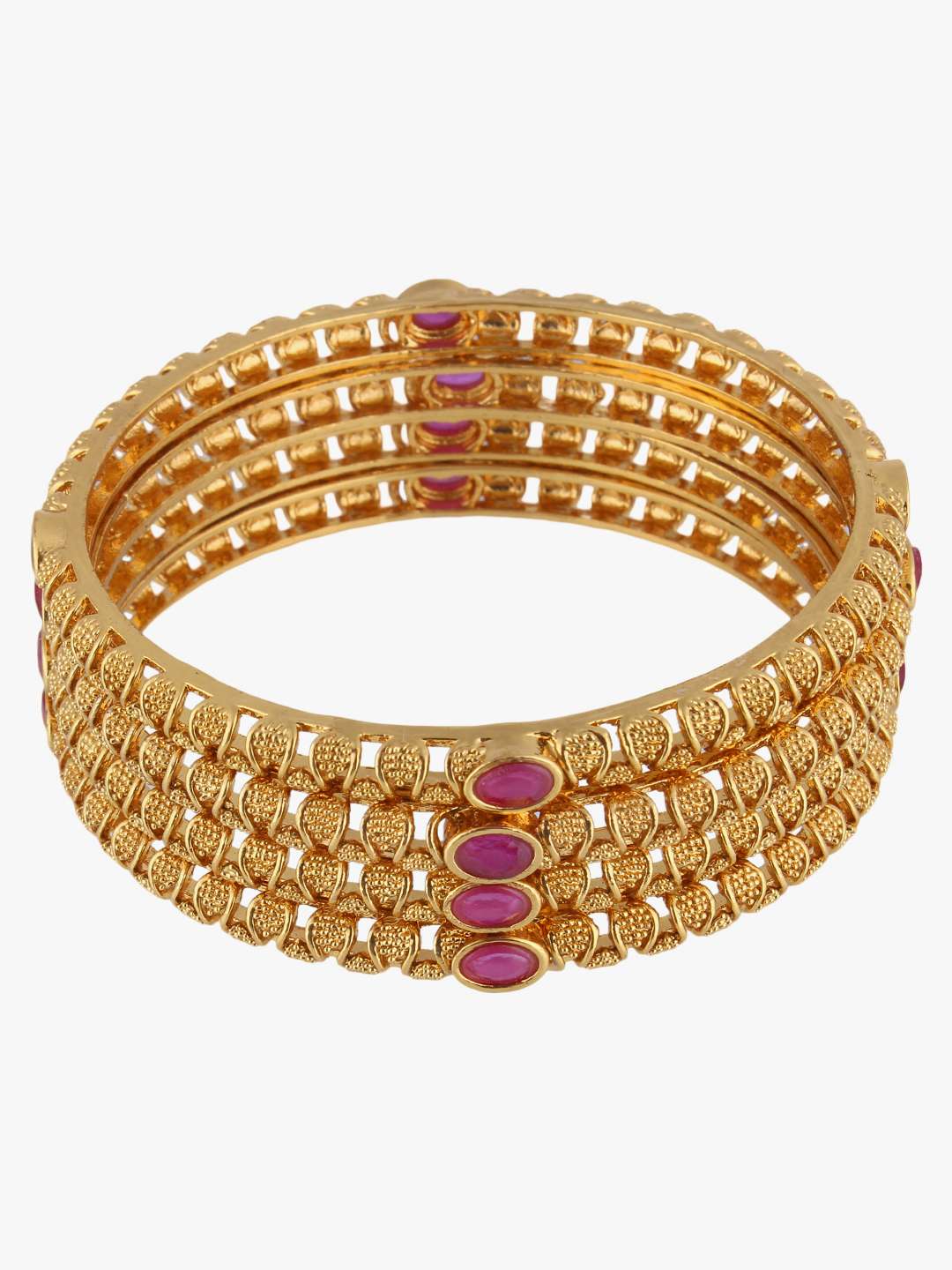 Set of Two 24 CT gold-plated handcrafted bangles, each has an intricate textured pattern.