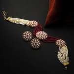 This jewellery set consists of a Necklace and earrings Gold-plated Antique Pearl Layerd Jewellery Set, has Red Stone-studded detail, secured with a S-Hook closure,A pair of matching embellished drop earrings, secured with post and back closure, Gold plating is long lasting and non allergic to skin