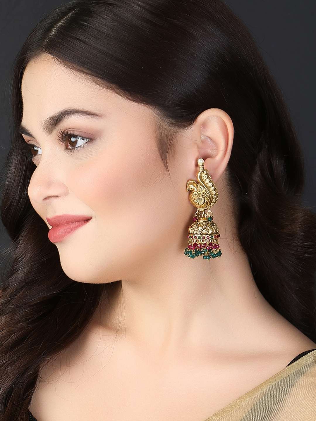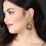 Women 24CT Gold-Plated Handcrafted Stone-Studded Multicolor Red and Green Pearl,Gold-Plated,our Gold plating is long lasting and non allergic to skin,and has artificial stones,Secured with a Post back closure.