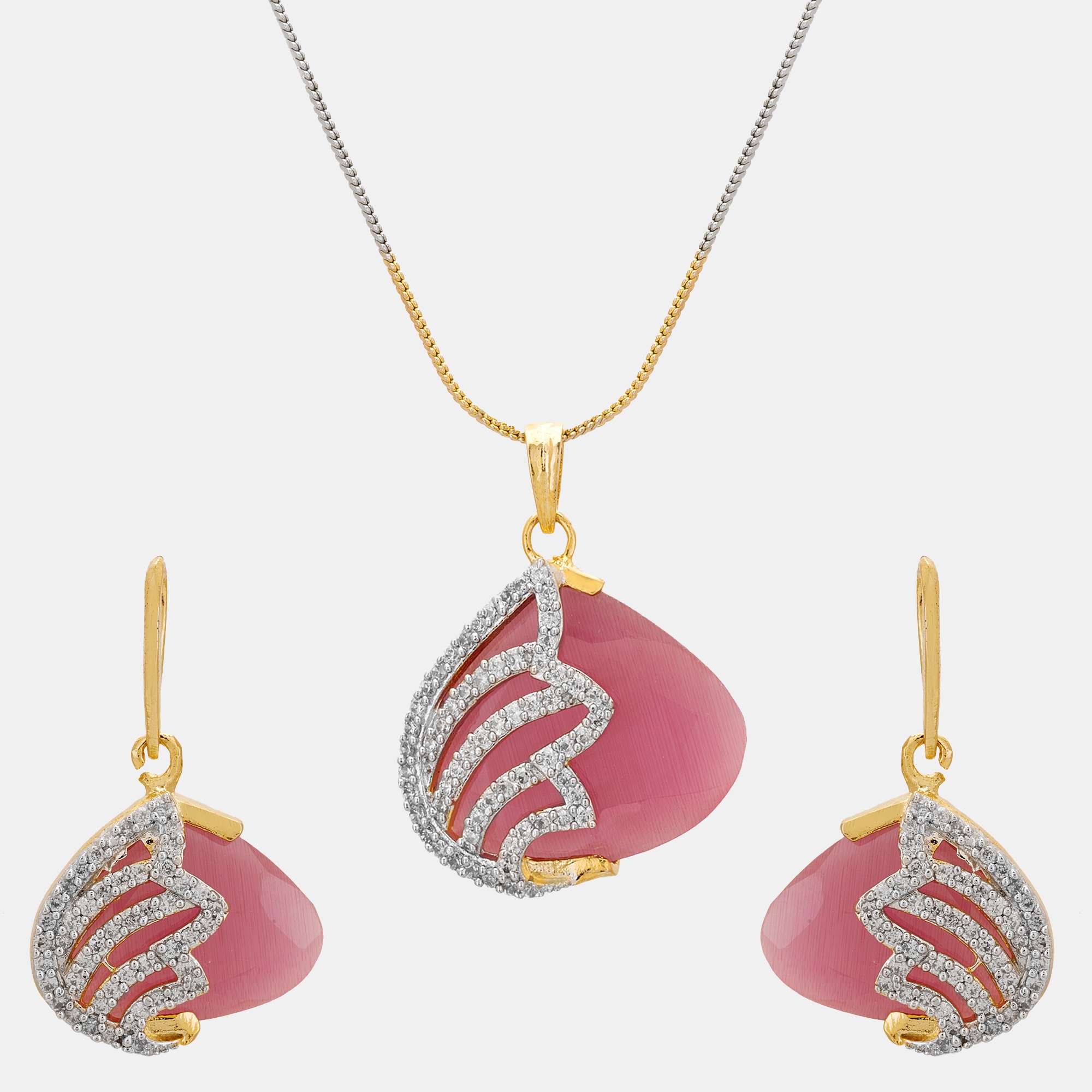 24CT Gold-plated Stone-StuddedJewellery Set with Drawstring closure,A pair of matching earrings ecured with a post and back closure Gold-plating is long lasting and non allergic to skin.