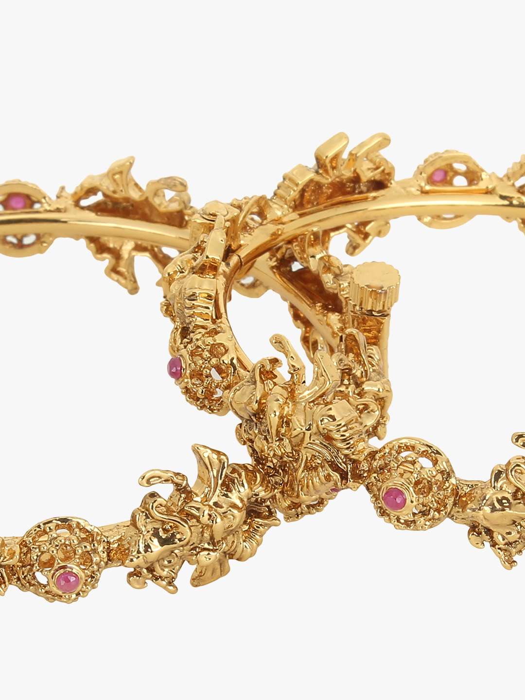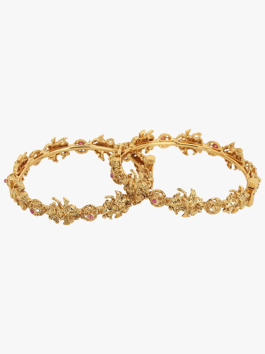 Set of Two 24CT gold-plated handcrafted bangles, each has an intricate textured pattern.