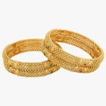 Set of Two 24CT gold-plated handcrafted bangles, each has an intricate textured pattern.