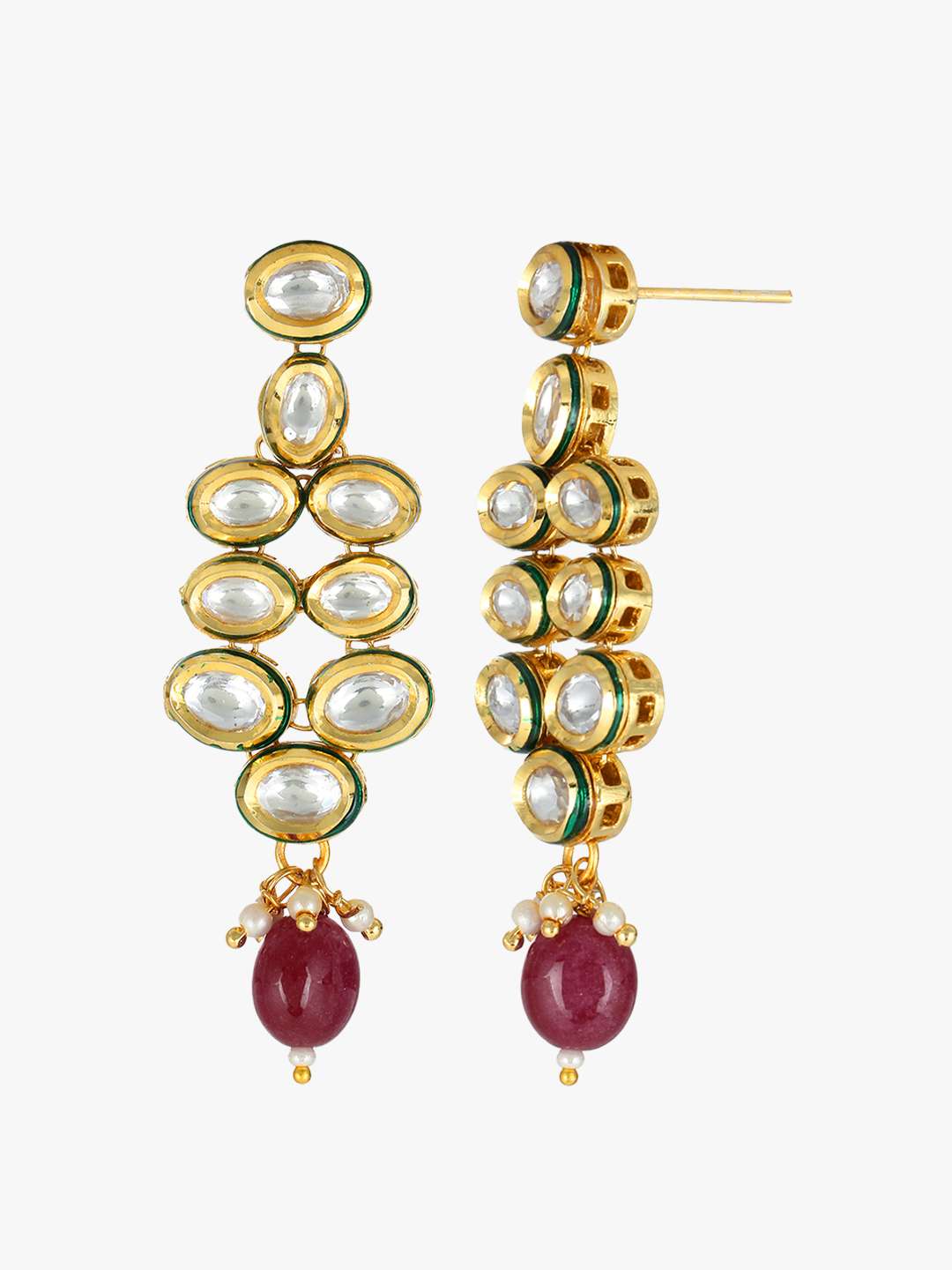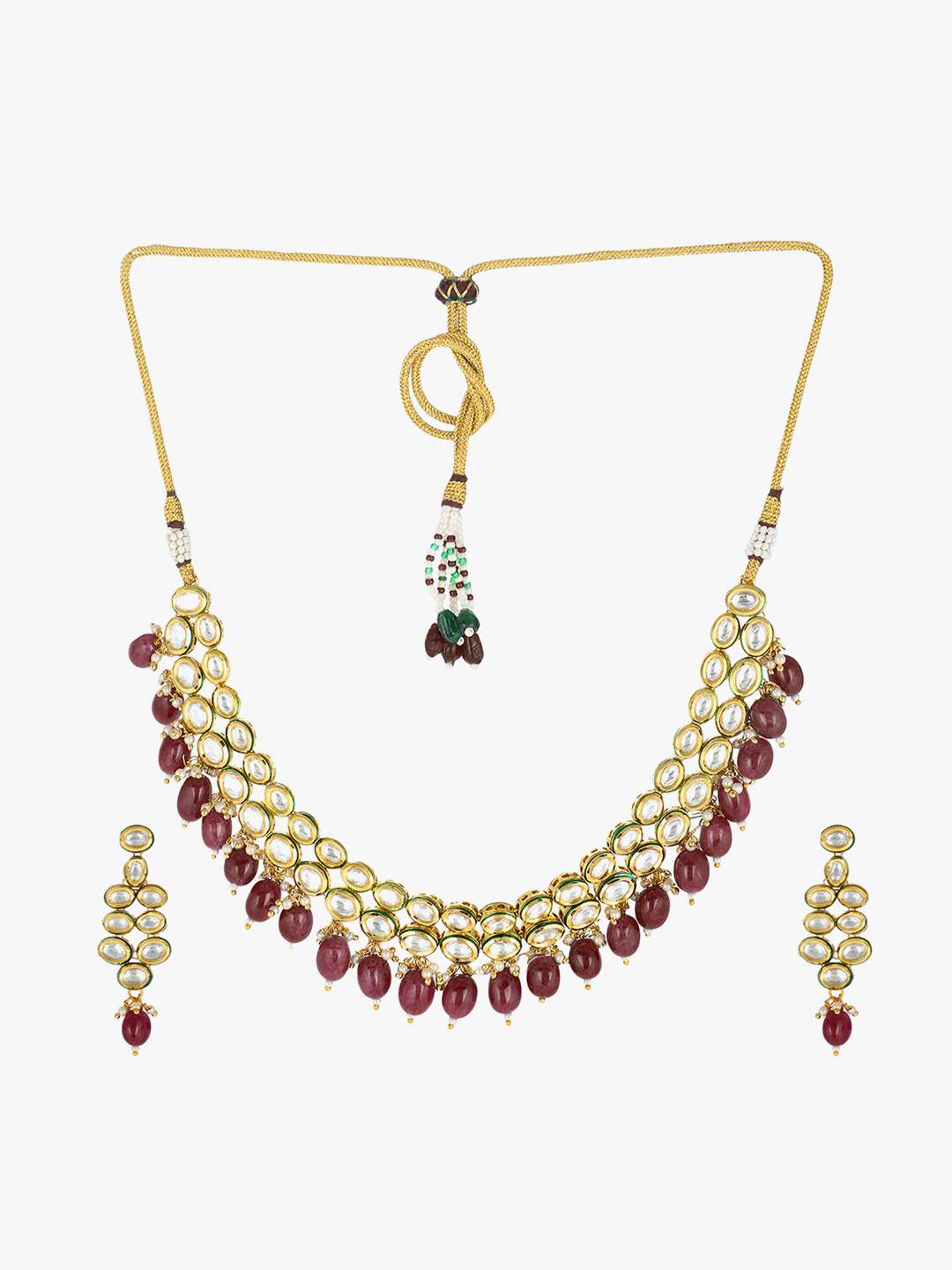 This Jewellery set consists of a necklace and a pair of earrings Gold-plated and stranded necklace with Drawstring closure, A pair of matching earrings, secured with a post and back closure, Gold plating is long-lasting and non-allergic to skin.