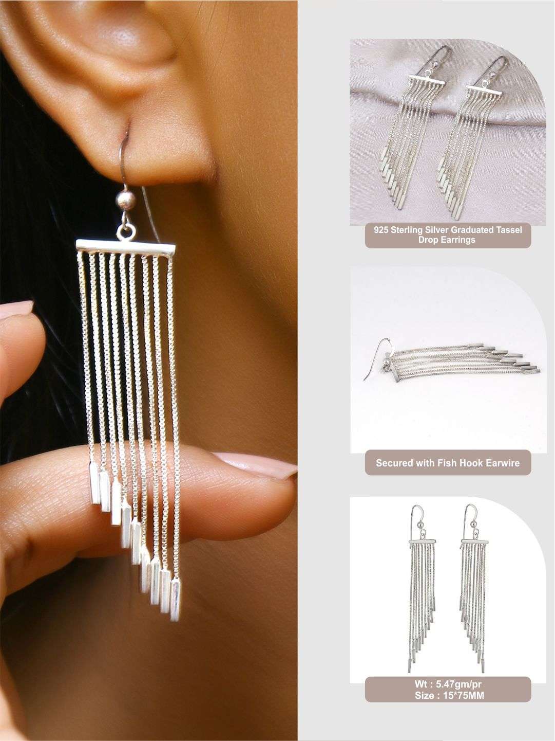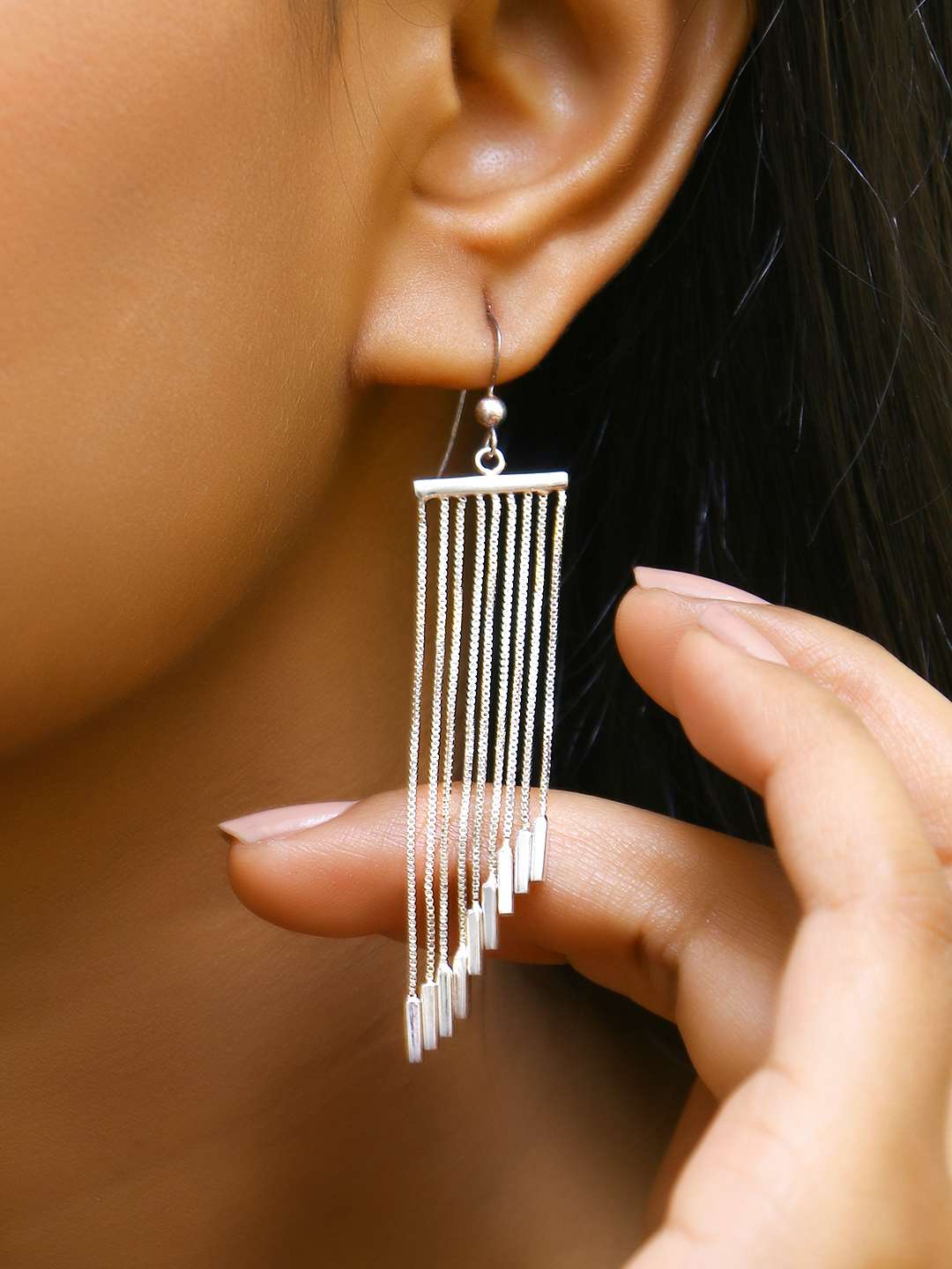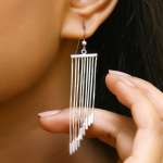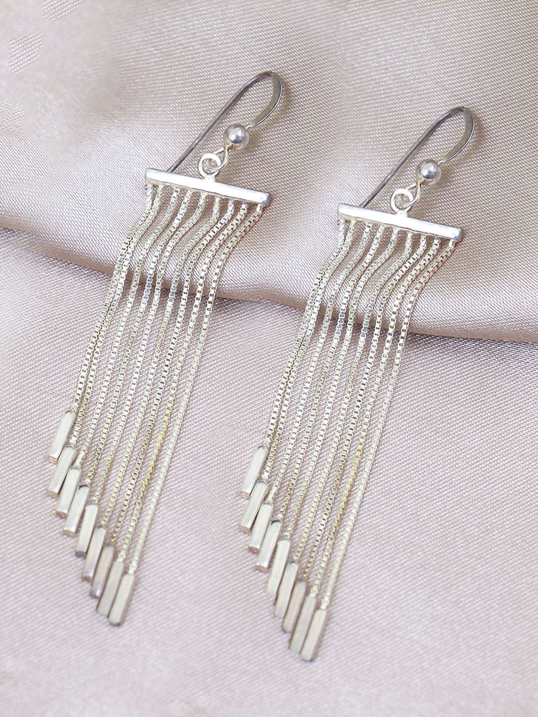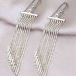 Womens 92.5 Sterling Silver Long Chain Tessel Dangle Earrings, Secured with a Push-Back closure. Our silver plating is long-lasting and non-allergic to the skin.