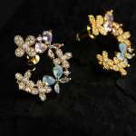 CZ-Studded Floral Shape Sea Green Earrings