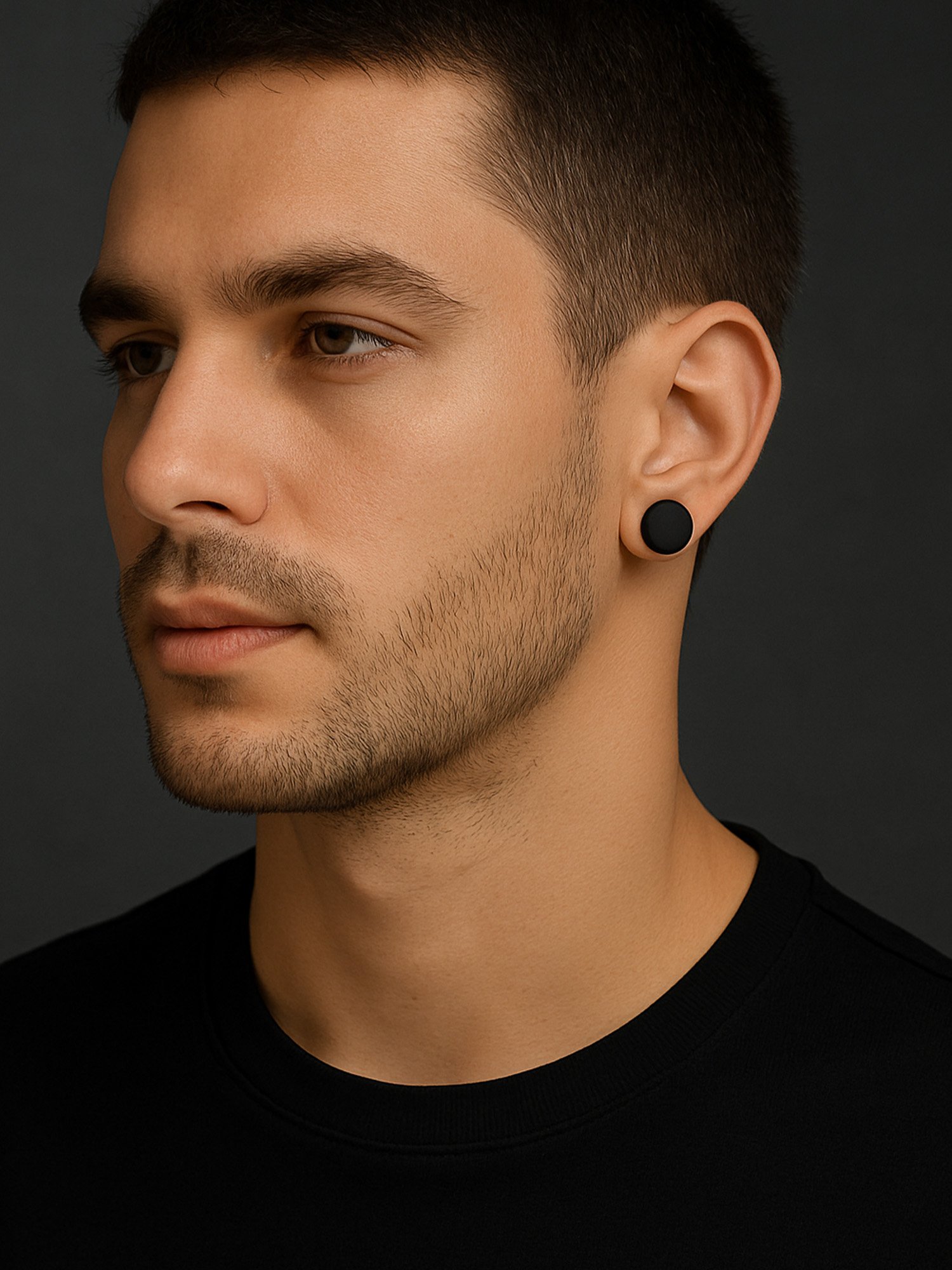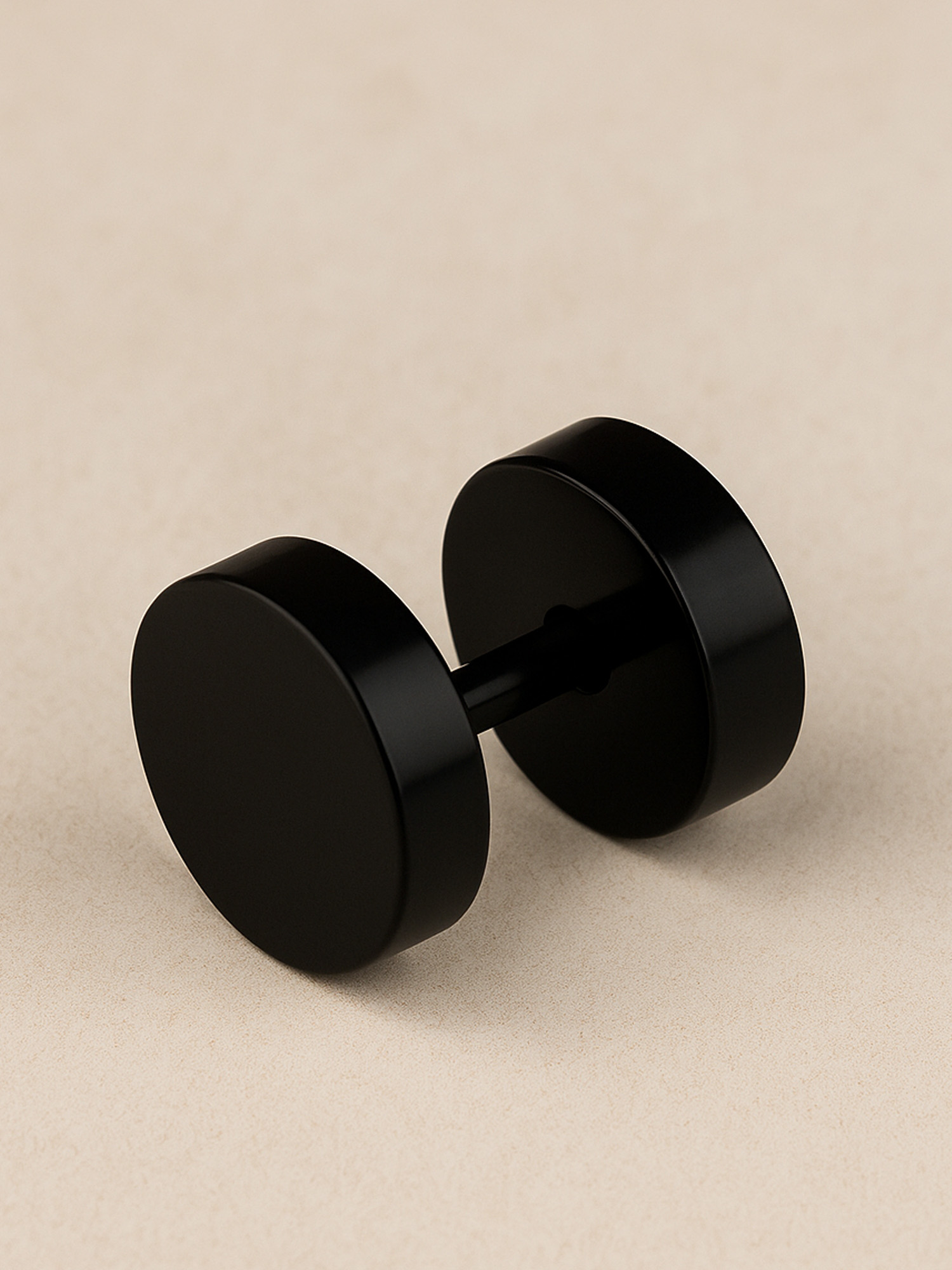 Dumbbell Black Alloy Earrings Studs for Boys & Mens