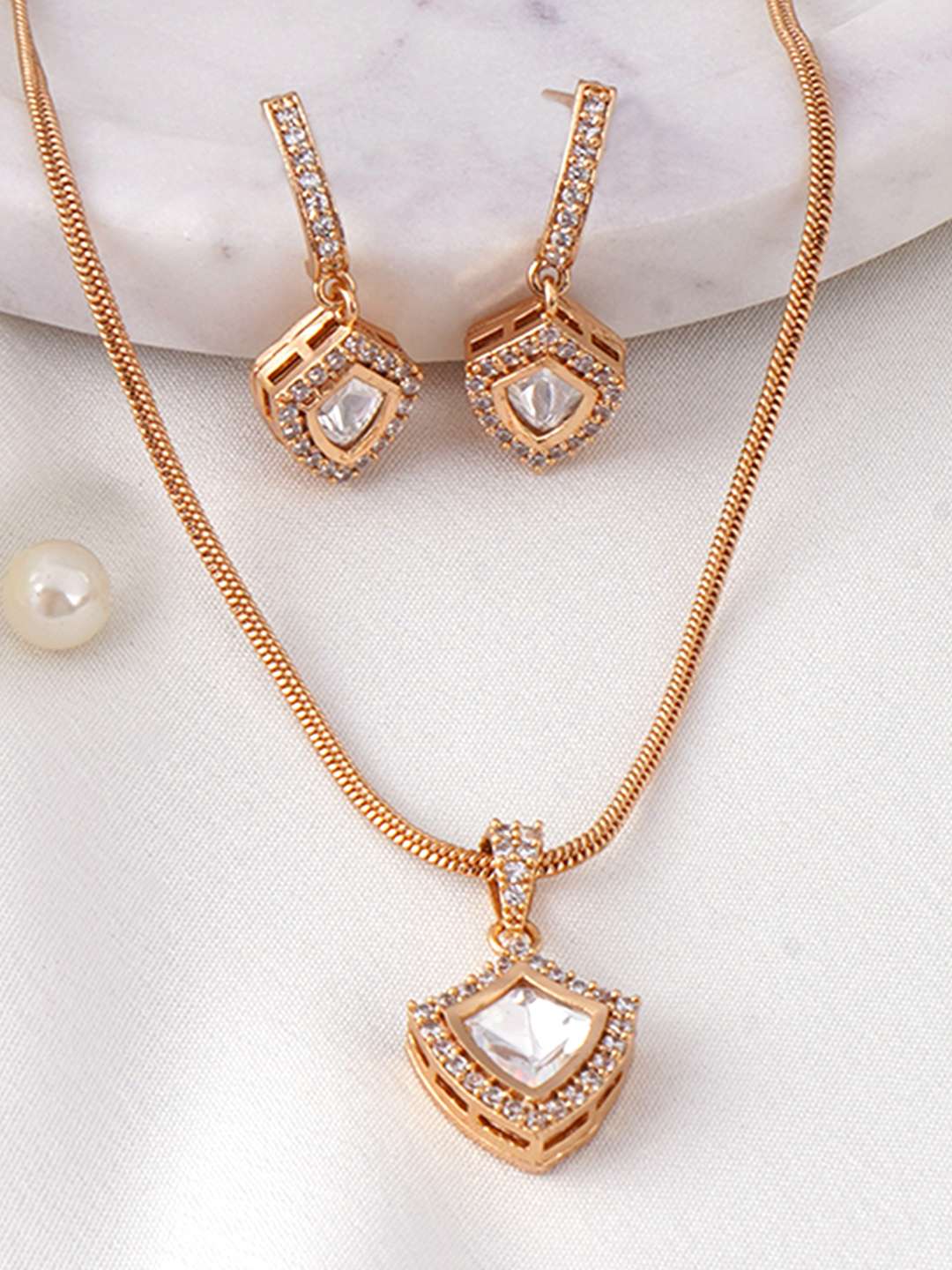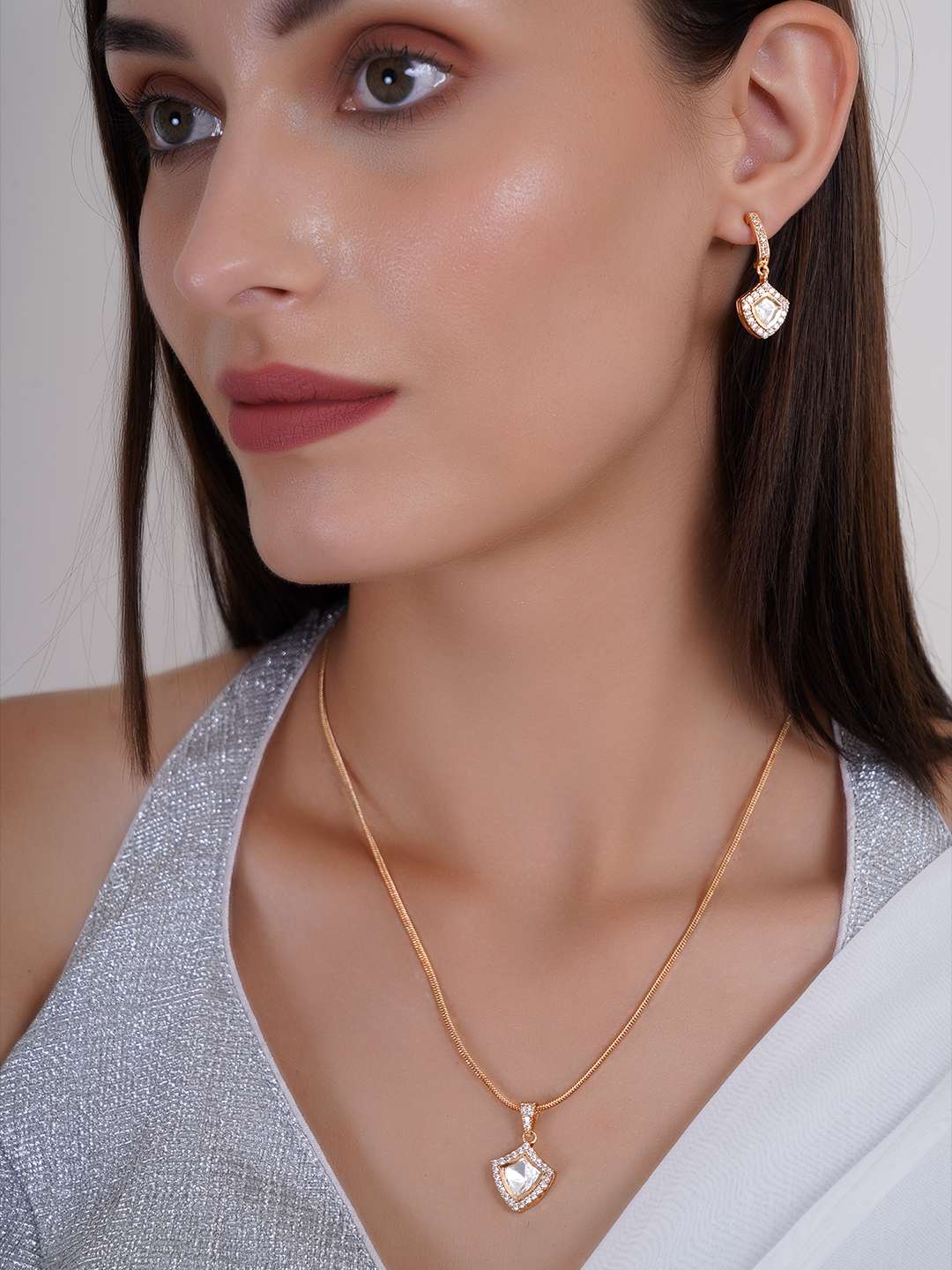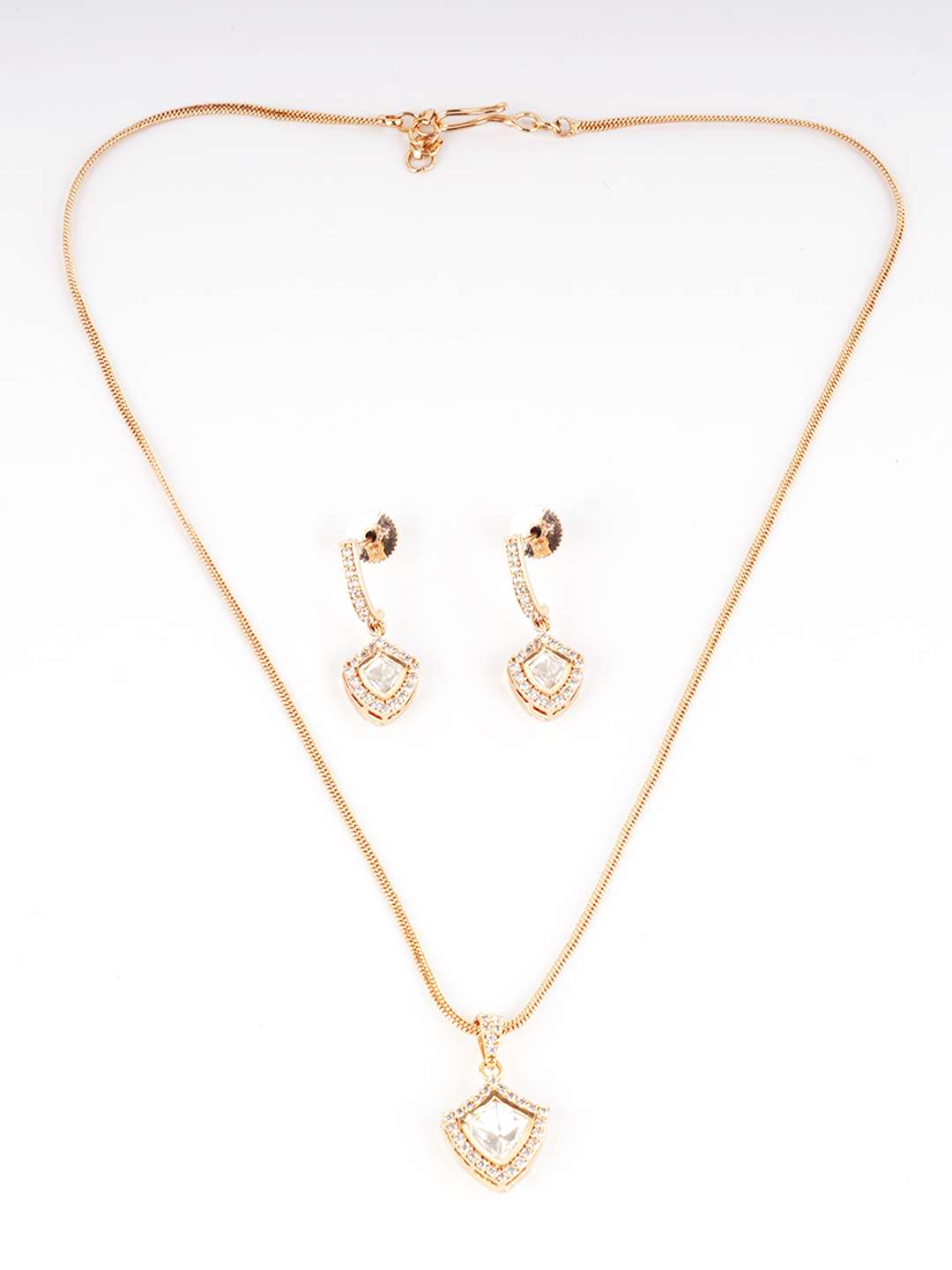 Gold Plated AD and Kundan Pendant and Earrings Set