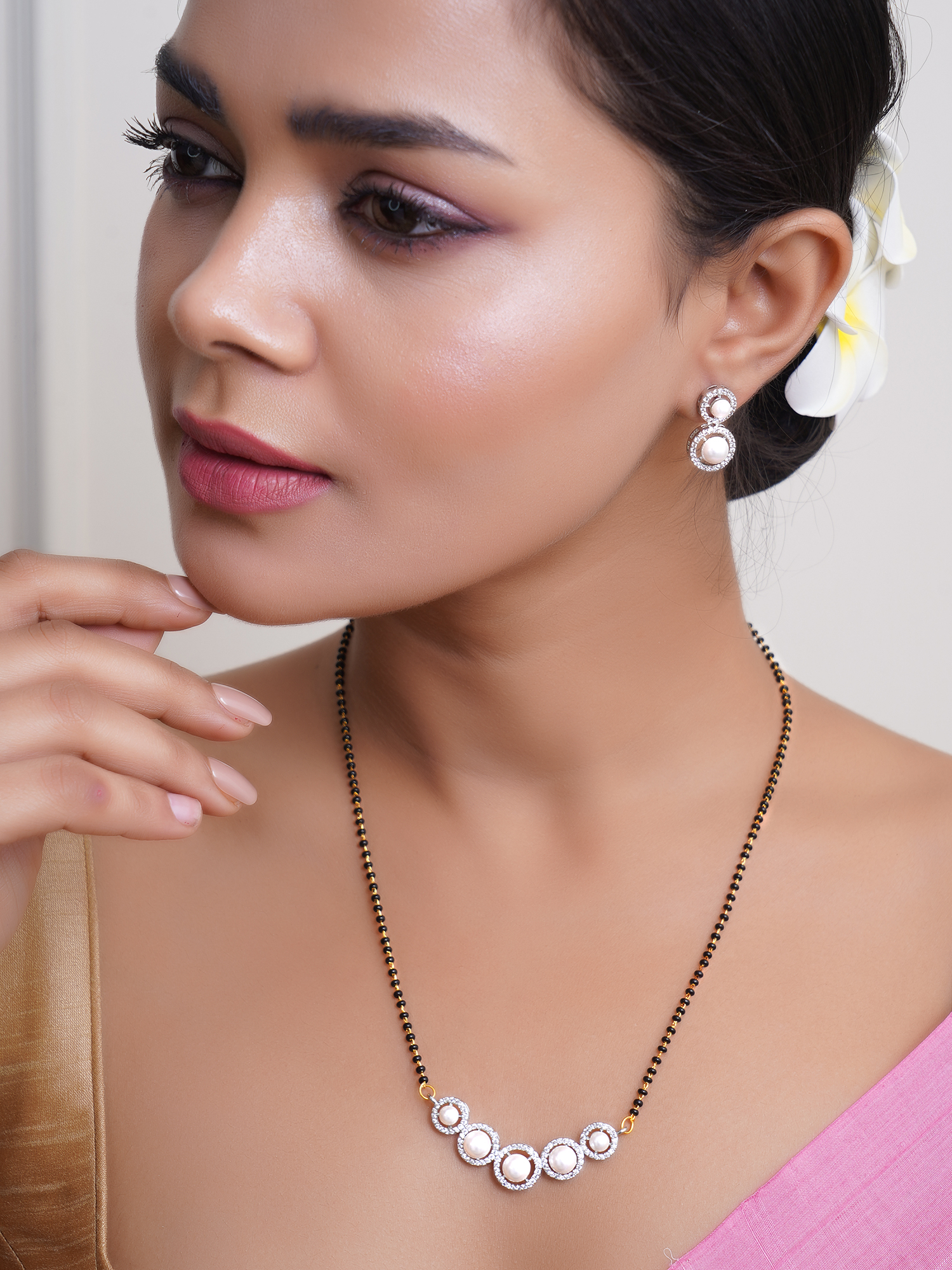 Elegant Design: Features a beautifully curved pendant adorned with sparkling American diamonds (AD), adding a touch of glamour.